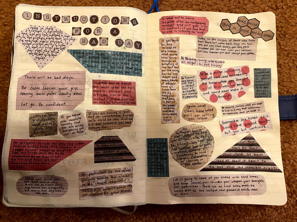 “There will be bad days, times when the world weighs on you for so long it leaves you looking for an easy way out. There will be moments when the drought of joy seems unending. Instances spent pretending that everything is alright when it clearly is not. Check your blind spot. See that love is still there, be patient. Every nightmare has a beginning, but every bad day has an end.”