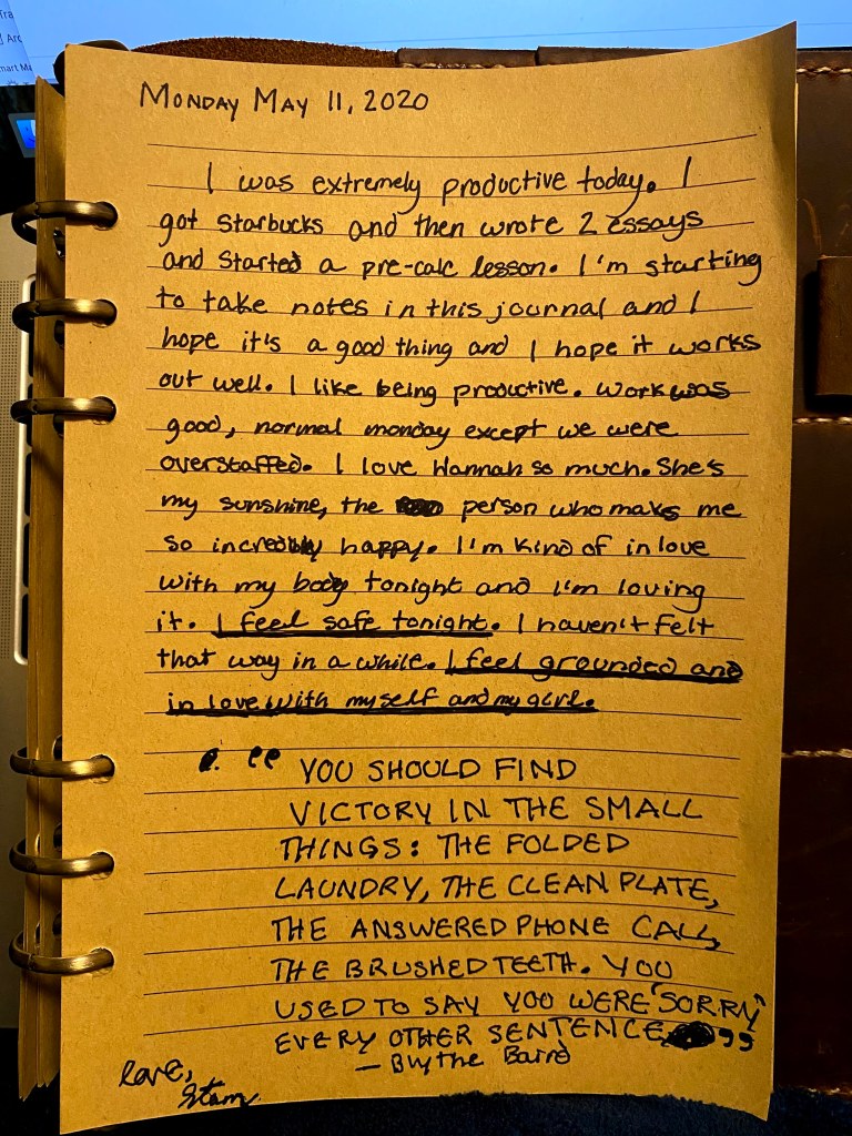To be honest, this post was put together over the course of three weeks. Several different puzzle pieces were put together to make up this semi-organized piece of writing. To end this jumble of mismatched puzzle pieces resembling the sky, I have a journal entry. Scribled in a new leather journal, the pages smelling of leather, and the binding sturdy, it is honest about how I feel at this moment in time. I know that’s enough for me, and I’m hoping it’s okay to assume it’s enough for you as well as we all move forward.