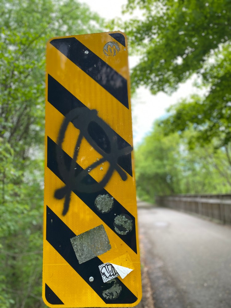 In addition to the positivity I am lucky to have right now, I have some pictures to share from some bike rides Hannah and I have done recently. There’s one particular trail that we’ve been loving. It has all of these signs with things spray painted, drawn, and carved into them. It creates art in the last place you’d expect it. I think that’s a pretty good definition for beauty.